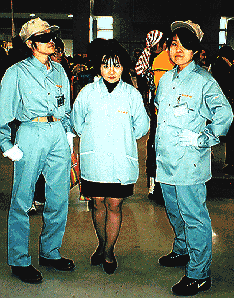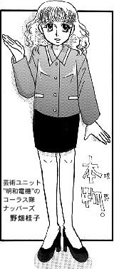 まあ、こういった事項を出口でチェックされて、クリアーしたらやっと出られます。私は只の事務服なのでとっとと!クリアーですわ。そうそう、「チェンジ」の裏表紙には自分のコスプレする「キャラクター名」を書きます。私は実在の人物をやったので、「キャラクター名」という響きにちょっと違和感。因みに私の「キャラクター」は、明和電機のコーラス隊、「ナッパーズ」です。髪型が一緒だという理由で「野畑桂子」さん。ホンモノはそりゃあもうもう、めちゃくちゃ可愛くて可愛くて、ワタシなんぞがやっちゃあイカンのですが〜…(冷汗)。