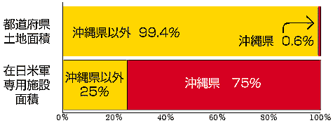 * 本土に住む住民一人当たりの米軍基地面積は約0.7平米、沖縄住民のそれはその280倍の約198平米。数値は全て1997年現在。