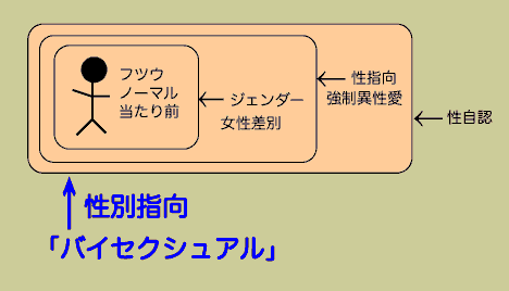 そして次にすすみます。実は「性指向/性的指向」っていうのは、これは実は「性別指向」であった、と。これを明らかにするのが「バイセクシュアル」っていう問題領域なんじゃないかという風に私は思います。