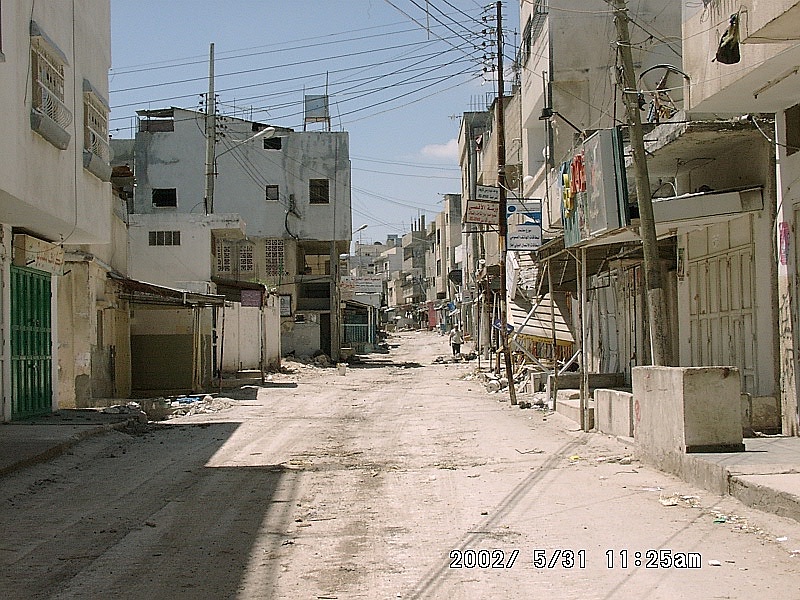 (写真)こんな感じで人がいないんです。ここは普通、人が一杯いるとこですよ。ナブルスの市内、バラタ難民キャンプ。ここを歩くと撃たれるのでISMの外国人が周りを取り囲んで歩いて、撃ったら外国人に当たるようにして家まで送るということをするわけですね。で、行くわけですよ。路地の奥のほうに行くと、わらわらわらわら子供が出てきて、口笛を吹いて、拍手とか湧き上がって、「救いの神が来たあ」っていう雰囲気に街がなるわけ。たかだか5、6人で囲って行ってるだけなのに。でも、向うからしたら「見捨てられてないんだ」と、ここに救いの人がいるんだ、助けに来てくれたんだと、ものすごいの。私は何も出来ないでしょ。騒ぎがでっかくなるとまたイスラエル兵が来る、撃たれるかもと思うでしょ。でも分かるわけ。本当に人が来てくれる事、見られてることを欲している。皆が見ていないと何されるかわからない。実際そうだったわけ。虐殺もあったわけだし。サブラ・シャティーラの虐殺、ジェニンでもそうだし。国連の監視団すら入れないんでしょ。そういうことかがあるから、見られているということが抑止になるし、見られなくなったときに何が起こるかという事も分かっているから、ものすごく、「来てくれたあ」って。でも、何も出来ませんよ、私。その時が一番辛かったです。