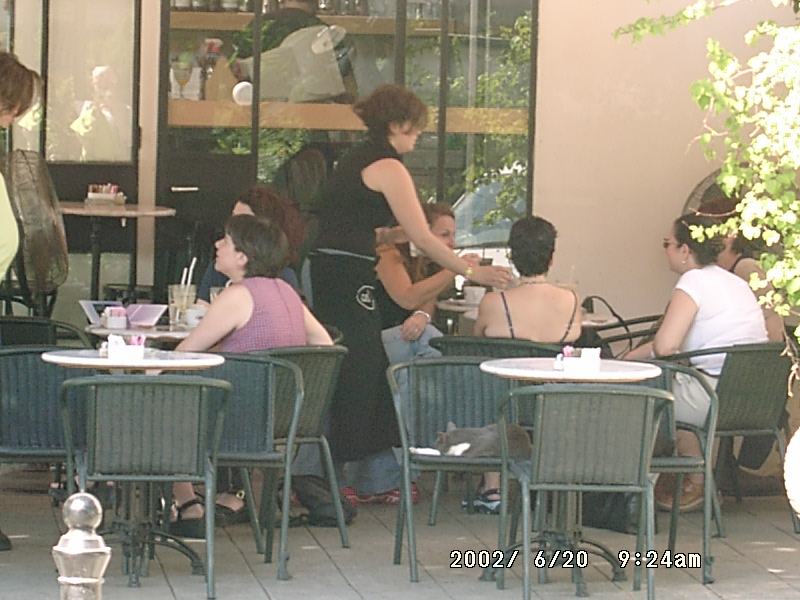 (写真)これは、あの難民キャンプから車で一時間ぐらいでテルアビブのカフェです。普通で、まるでフランスみたいな。地図を見てください。私が捕まったのは右側の地図でナブルスという街です。この街にいました。エルサレムと言うのは(イスラエルが主張する)首都で、私が釈放されてから泊まっていた宿のあるところです。